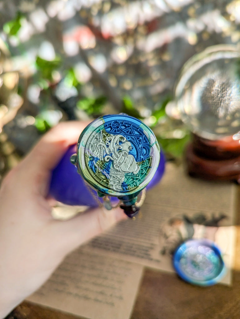 Sealed in marbled sky blue, silver, and frosted teal wax stamped with the Aquarius glyph, and finished with a hand-illustrated label listing its recipe: