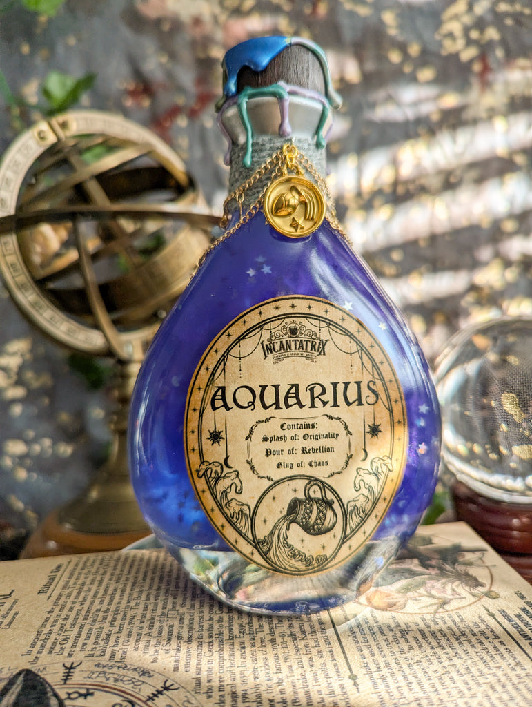 Celebrate the inventive, rebellious spirit of Aquarius with this decorative potion bottle – a tribute to the zodiac’s bold visionaries.